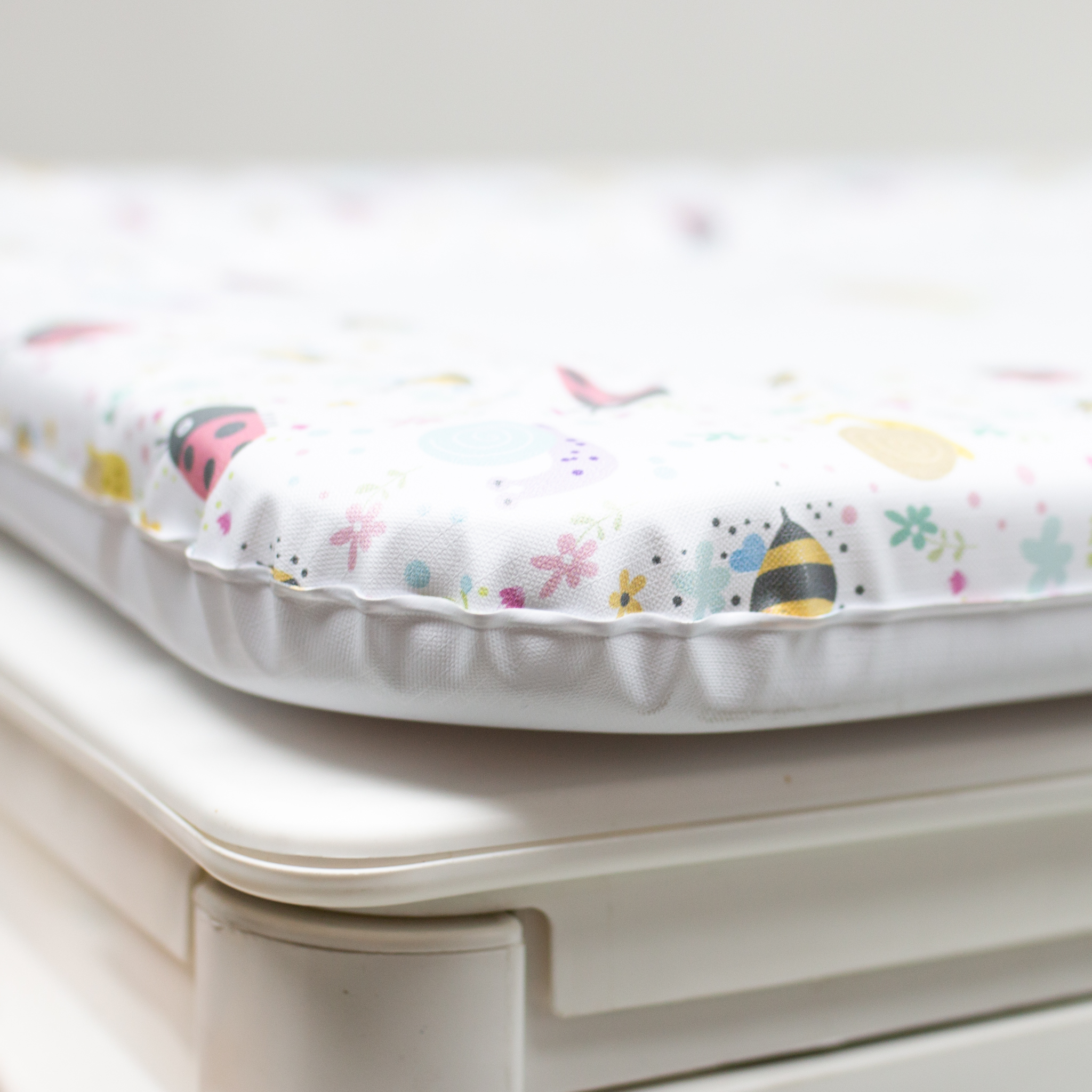 El estampado alegre le añade un toque divertido que se adapta bien a cualquier espacio o decoración infantil. Además, el cambiador Rubino está acolchado para brindar un soporte cómodo y seguro durante cada cambio de pañal. Su tamaño compacto permite guardarlo fácilmente en espacios reducidos, ofreciendo una opción práctica para el día a día o para llevar en viajes.